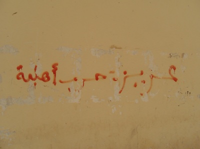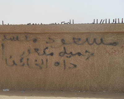 آثار الدعاية على الجدران تبقى حتى بعد رحيل الأنظمة كما هو حال هذه الكتابة ضد نظام ولد الطائع وعلاقاته مع إسرائيل (الأخبار)