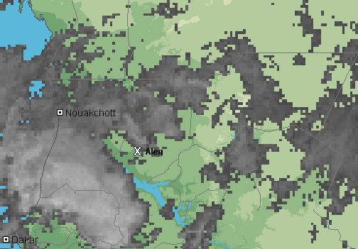 وحسب آخر صور الأقمار الاصطناعية فيتوقع أن تكون المنطقة الممتدة من مدينة نواكشوط وحتى الحدود السينغالية، مرورا بمدن تكند وروصو قد شهدت بعض التساقطات المطرية الخفيفة فجر اليوم، مع احتمال أكبر لتساقطات مطرية أكثر على مدينة روصو وكامل المنطقة المحاذية للنهر السينغالي بإذن الله تعالى.