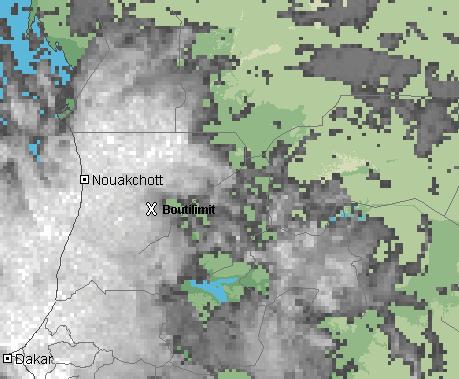 وحسب آخر صور الأقمار الاصطناعية فقد شهدت المنطقة الواقعة أفقيا بين مدينة تنبدغة فى الحوض الشرقي ومدينة بوغى فى ولاية لبراكنة، شهدت هذه المنطقة منذ غروب الشمس وحتى الآن وجود سحب خفيفة على الحوضين وكثيفة على غرب لعصابة، وكامل غيدى ماغة، غورغل وجنوب لبراكنة ويتوقع أن تكون المنطقة شهدت أو تشهد الآن تساقطات مطرية مابين 5 إلى 60 مم بإذن الله تعالى.