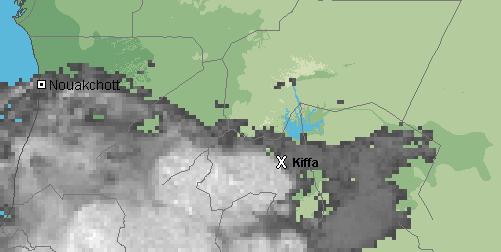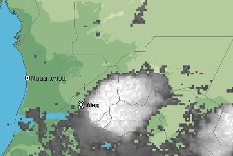 صور الأقمار الاصطناعية أظهرت تركز السحب فجر اليوم الساعة الثالثة على ضفة النهر السينغالي، خاصة المنطقة الواقعة بين مدينة بوغي وعاصمة ترارزة روصو، حيث يتوقع أن تشهد هذه المنطقة هطول أمطار تقدر ما بين 10 إلى 90 مم بإذن الله تعالى.