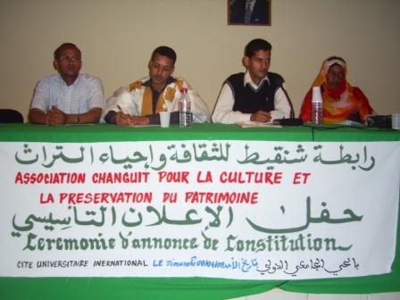 برعاية من اتحاد الطلبة والمتدربين الموريتانيين بالمغرب نُظم مساء اليوم الأحد08 يونيو 2008 على تمام الساعة السابعة بقاعة المحاضرات بالحي الجامعي الدولي الجامعي حفل تأسيسي لرابطة ثقافية جديدة تدعى "رابطة شنقيط للثقافة وإحياء التراث"..