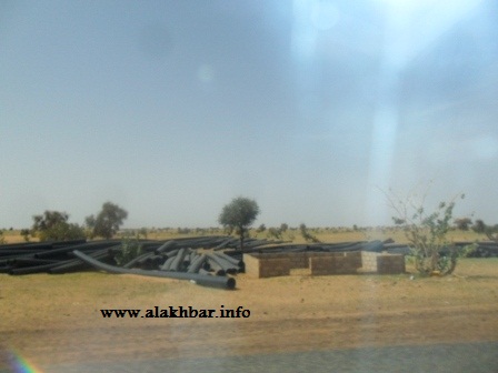 ومع انتهاء الفترة التي حددها الوزير في خطابه الاحتفالي بخمسينية الاستقلال العام الماضي فإن واقع المشروع –الذي تنفذه الهندسة العسكرية- يقول إنه لم ينجز منه حتى الآن إلا حوالي 2 كلم من الأنابيب من أصل 107 كلم هي مسافة المشروع، كما تم حفر حوالي 20 كلم دون أن توضع فيها الأنابيب، وهو كان سببا في العديد من حوادث السير، وأزعج ملاك المواشي في المنطقة حيث سقطت المواشي في الحفر الكبيرة التي خلفها المشروع على جانب الطريق الرابط بين ألاك ومدينة شكار.