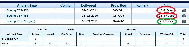 اثنتان من أسطول الموريتانية للطيران انتهى عمرهما الافتراضي، أما الطائرة الثالثة فقد انتصف عمرها وهي المستخدمة في أغلب الرحلات الرئاسية