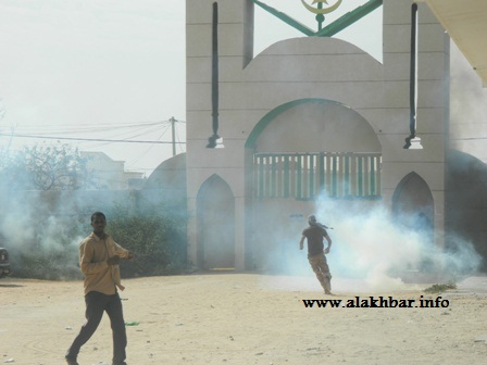 ورغم تكرار حناجر الغاضبين لعبارة التطمين "سلمية.. سلمية" واجهت شرطة مكافحة الشغب المسيرة الطلابية بوابل من مسيلات الدموع والعبوات الحارقة أسفرت عن حالات إغماء وحروق وكسور في كثير من الطلاب المحتجين، كانت من أخطرهم حالة الطالب عمر ولد سالم.