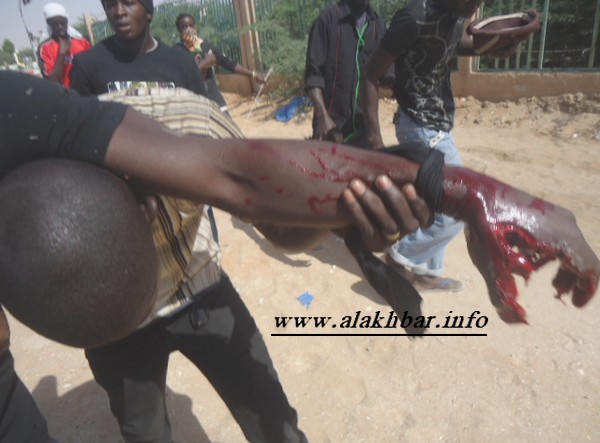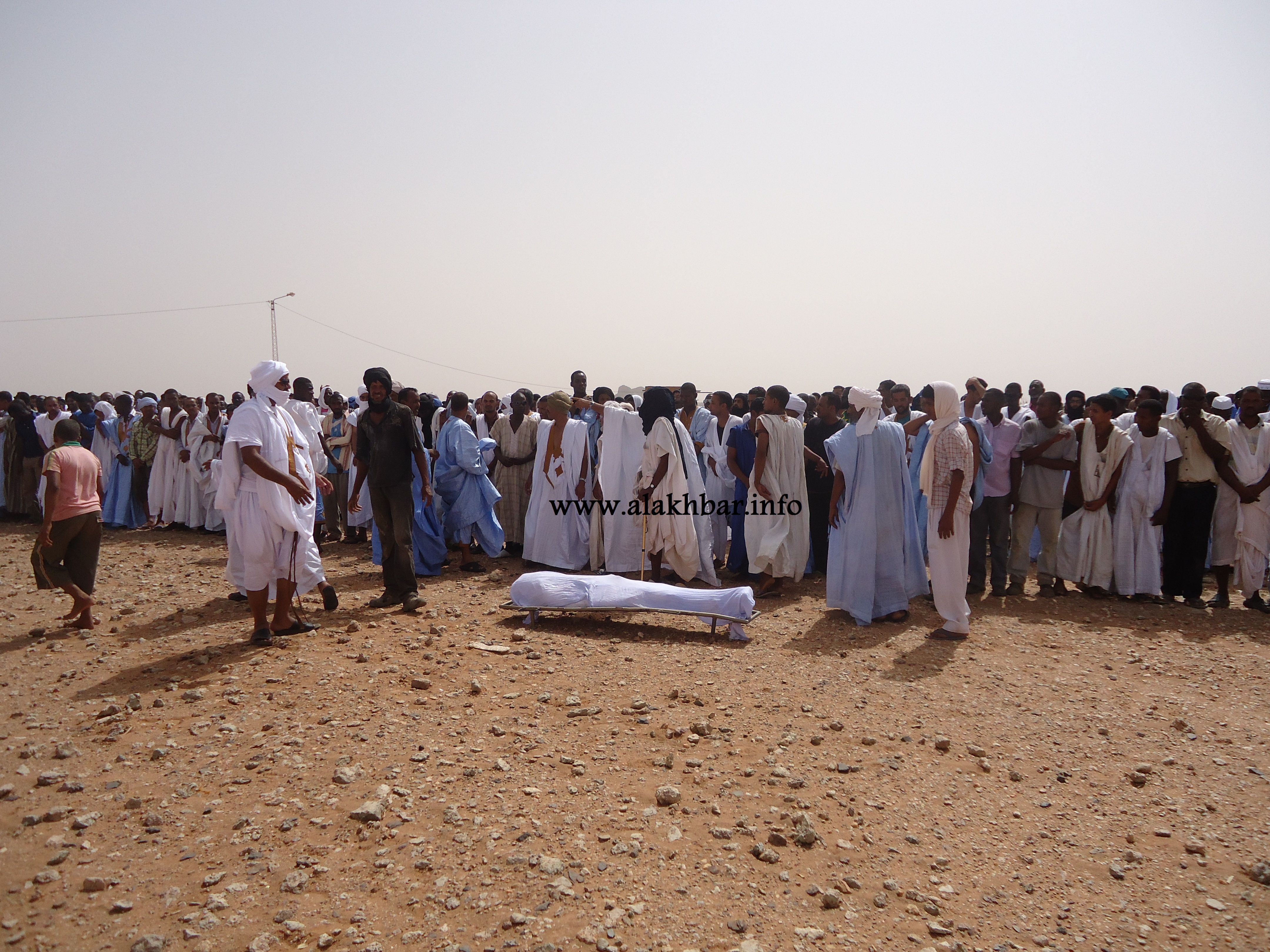 جثمان العامل في شركة نحاس موريتانيا محمد ولد المشظوفي، والذي قضى بعد تفريق قوات من الحرس لاعتصام عمالي أمام الشركة (الأخبار - أرشيف)