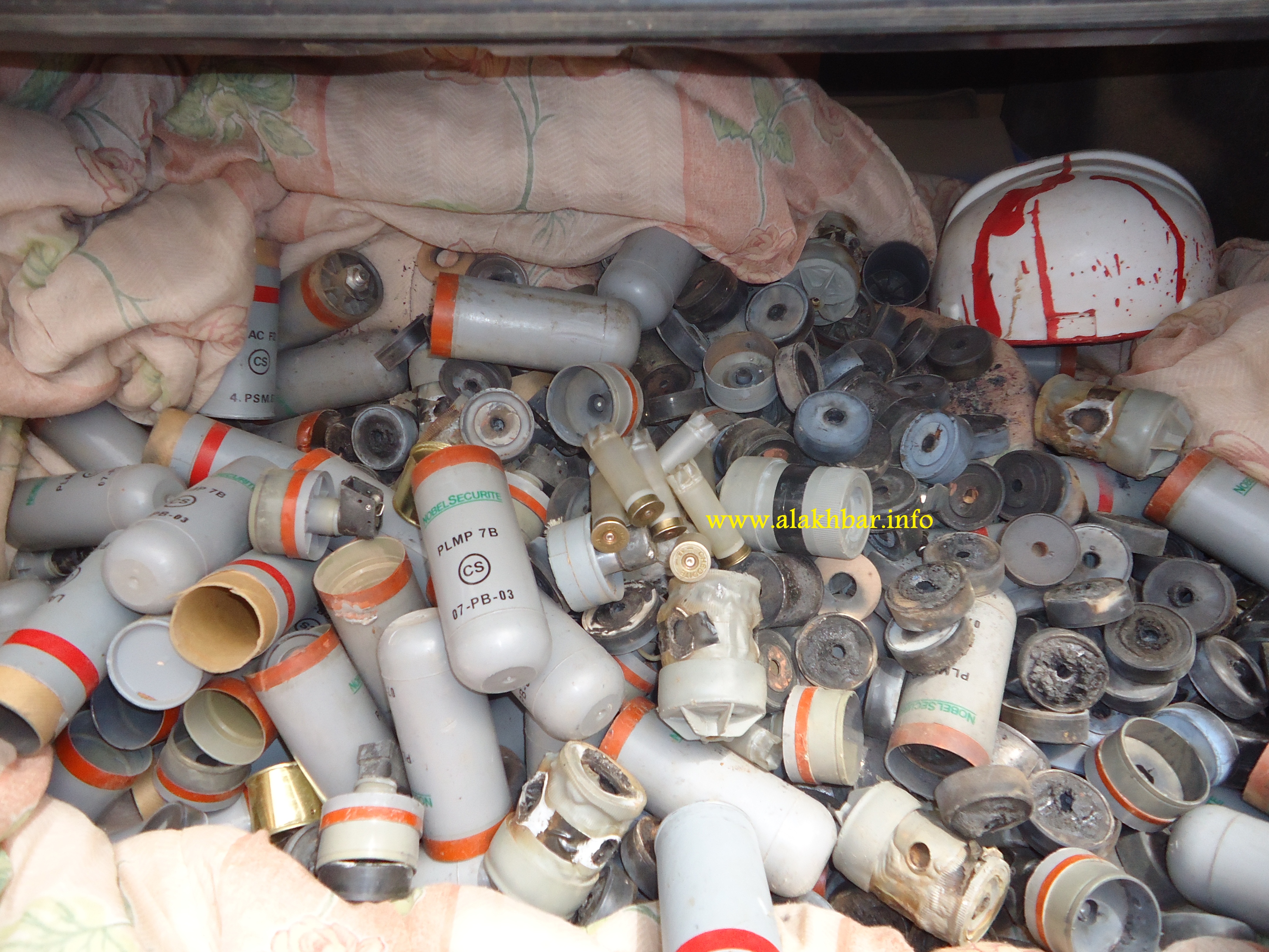 بعض القنابل المسيلة للدموع قام عمال شركة نحاس موريتانيا بجمعها بعد استخدام قوات الحرس لها في تفريق اعتصامهم (الأخبار - أرشيف)