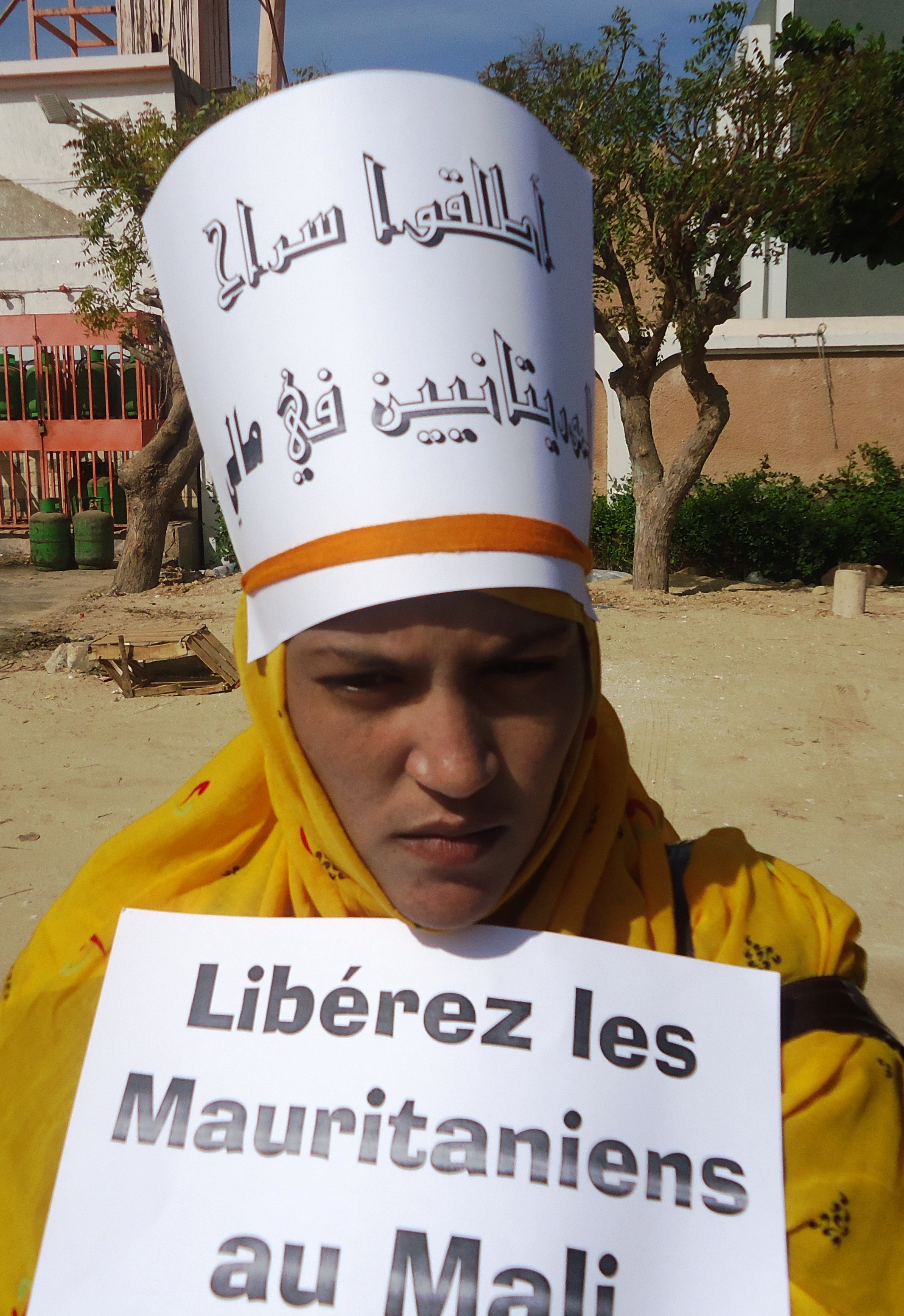 وطالب المتظاهرون السلطات المالية بالإفراج الفوري عن المعتقلين الموريتانيين لديها .