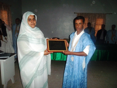 الأخبار(نواذيبو)- نظم نادى المنبر بثانوية نواذيبو1 على مستوى العاصمة الاقتصادية نواذيبو أمسية تكريمية بمناسبة تتويجه بجائزة أحسن نص مسرحى فى مبانى الإدارة الجهوية للتعليم مساء الأحد 03 مارس 2013.