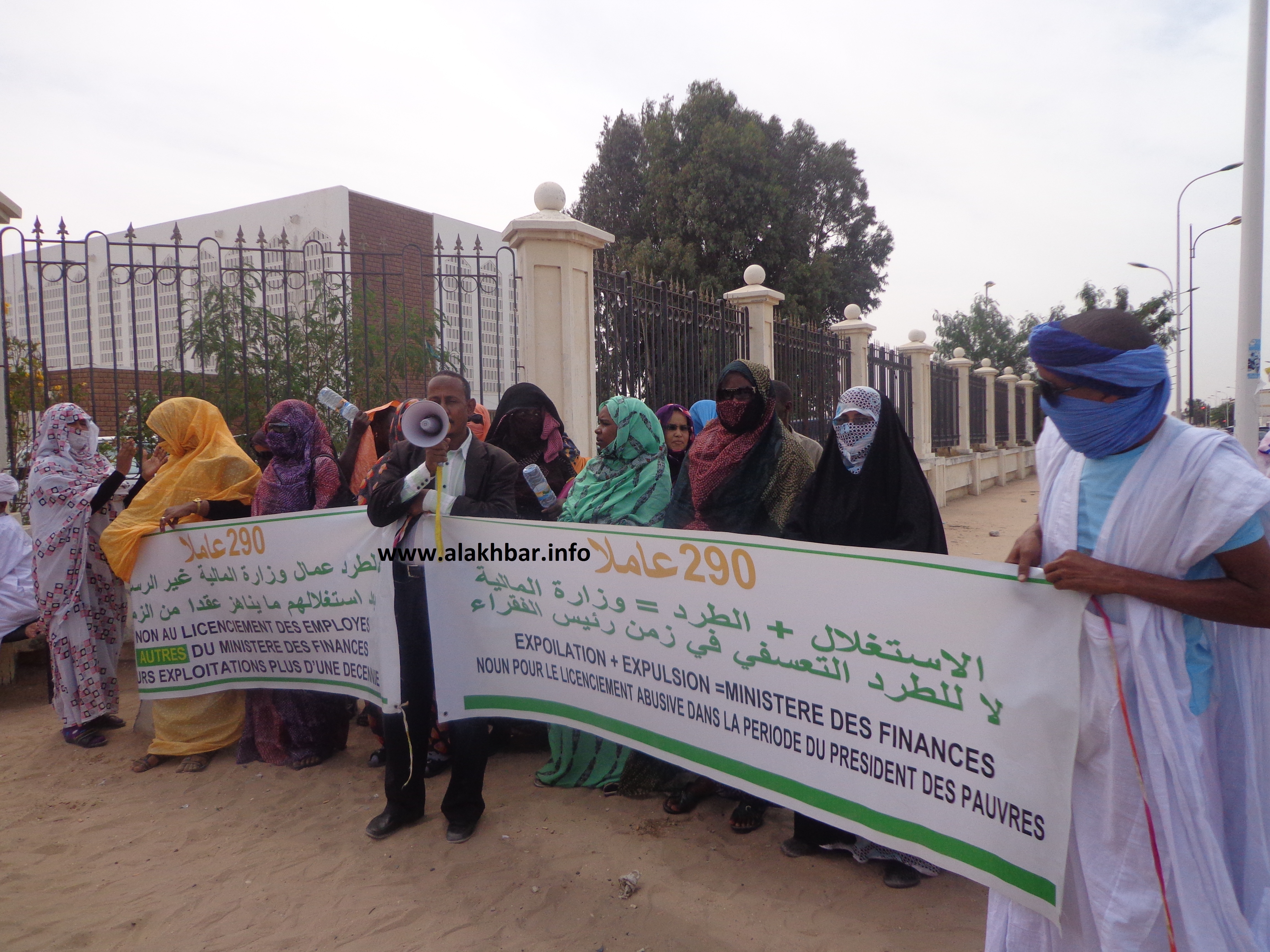 الأخبار (انواكشوط) تظاهر زوال اليوم 21-03-2013 أمام رئاسة الجمهورية عدد من العمال المطرودين من وزارة المالية مطالبين برد الإعتبار لهم وإرجاعهم إلى ميدان العمل .