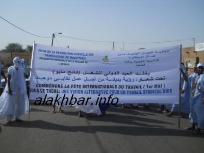 الأخبار (نواكشوط) ـ نظمت مركزيات الشغيلة الوطنية بمدينة "كيفه" عاصمة ولاية لعصابه، اليوم الأربعاء (01 ـ 05 ـ2013)، مسيرة عمالية تحت شعار "من أجل عمل لائق"، وذلك في ذكرى تخليد اليوم العالمي للعمال".