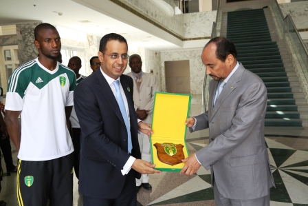 الأخبار(نواكشوط)- تعهد الرئيس الموريتاني محمد ولد عبد العزيز بدعم المنتخب الأول (المرابطون) في مشواره نحو كأسس أمم إفريقيا للمحليين بعد نجاحه في تجاوز التصفيات على حساب الجارة السنغال في مباراة مشهودة قبل يومين بالملعب الأولمبي بنواكشوط.