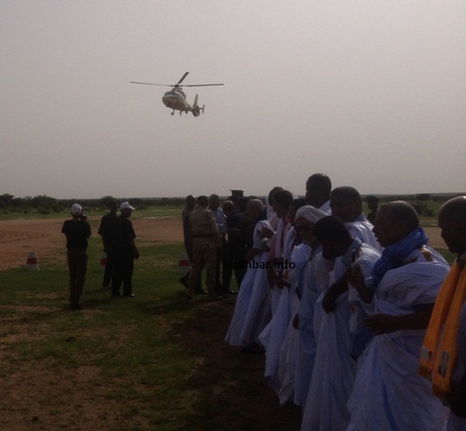 ولد عبد العزيز وصل إلى باسكنو الساعة التاسعة من صباح الجمعة على متن طائرة عسكرية تابعة للجيش الموريتاني، وأثر قدومه في وقت مبكر من صباح الجمعة على أعداد المستقبلين خصوصا في الساحة المخصصة لنزال الطائرة العسكرية.