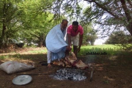 كلفت المجموعة هذان الرجلان بالإشراف على عملية تحضير "المشوى" وهو وجبة رئيسية فى مثل هذه الرحلات (الأخبار)