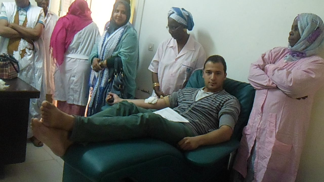 الأخبار (نواكشوط) نظمت جمعية بسمة وأمل ومنسقية نقابات الصحة بالتعاون مع المركز الوطني لنقل الدم اليوم السبت 20/ 04/ 2013 يوما للتبرع بالدم بمناسبة اليوم العالمي للعمال تحت شعار "الطاقم الطبي أولى بالتبرع بالدم".