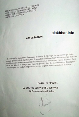 الأخبار (نواكشوط) - نجحت ضغوط رسمية متعددة في الإفراج عن شحنة من الدجاج الفساد كانت محتجزة لدى فرقة الجمارك في مدينة روصو على الحدود الموريتانية السنغالية، رغم الجهود التي بذلت فرقة الجمارك لمنع الشحنة بعد أن أصدر الأطباء الييطريون حكما "بعدم صلاحيتها للاستعمال وخطورتها على الصحة".