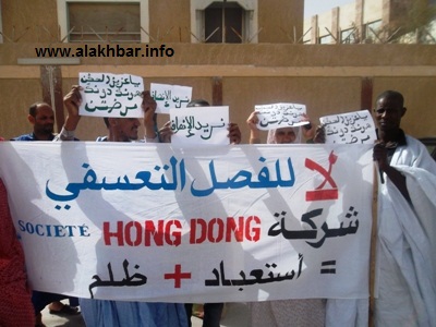 الأخبار(نواذيبو) - نظمت مجموعة من العمال المفصولين من الشركة الصينية "بولى هوندونك" وقفة احتجاجية صباح الأربعاء 30 يناير 2013 أمام مبنى الولاية للتعبير عن غضبهم من بطش وظلم الشركة الصينية حسب قولهم .
