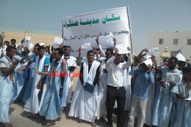 الأخبار(نواذيبو) - تظاهر العديد من شباب العاصمة الاقتصادية نواذيبو زوال اليوم الأحد 25 أغسطس 2013 أمام مبنى الولاية رفضا لما قالوا إنه تحديد للسن فى مسابقة تنظمها الشركة الوطنية للصناعة والمناجم (اسنيم).