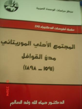 صدرمؤخرا من مركز دراسات الوحدة العربية في بيروت كتاب جديد بعنوان المجتمع الأهلي الموريتاني مدن القوفل (1591-1898م لمؤلفه الدكتور حماه الله ولدالسالم الكتاب الذي يقع في 479 صفحة يمثل في الأصل أطروحة دكتوراه للباحث ، تعتبر هذه الدراسة فريدة في بابها حيث نجد ولأول مرة حديثا عن وجود مؤسسات مجتمع أهلي في البلاد التي لم تعرف دولة مركزية منذ عهد المرابطين.