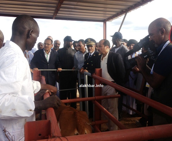 وخلال جولته مساء اليوم تابع الرئيس الموريتاني مقارنة بين عجول محلية، وعجول هجينة بين أبقار موريتانية وأجنبية.